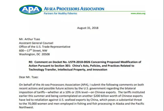 海上加工協(xié)會(huì)(APA)致USTR信函